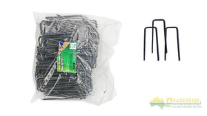 U Shaped Retaining Pins are ideal for the installation process in erosion control blankets, mats and meshes. Pins are made from a strengthened steel with sharpened points for easy insertion into the ground. The ‘U’ width of the pin is 35mm while the steel pin is 4mm in thickness. Pins are available in four sizes ranging from 100mm to 300mm in length.